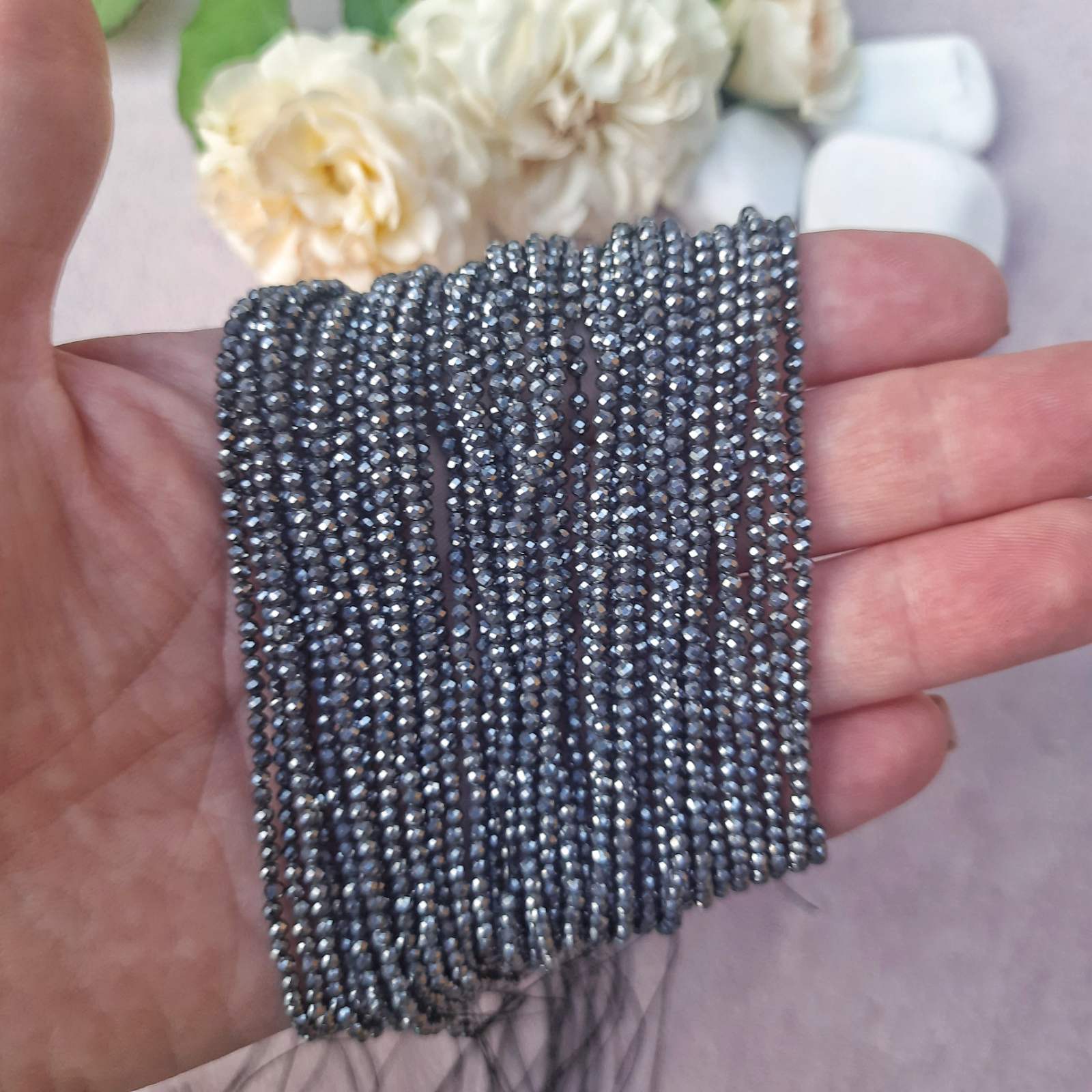 Намистини з терагерця натурального, 2 мм., огранювання, нитка 38 см.