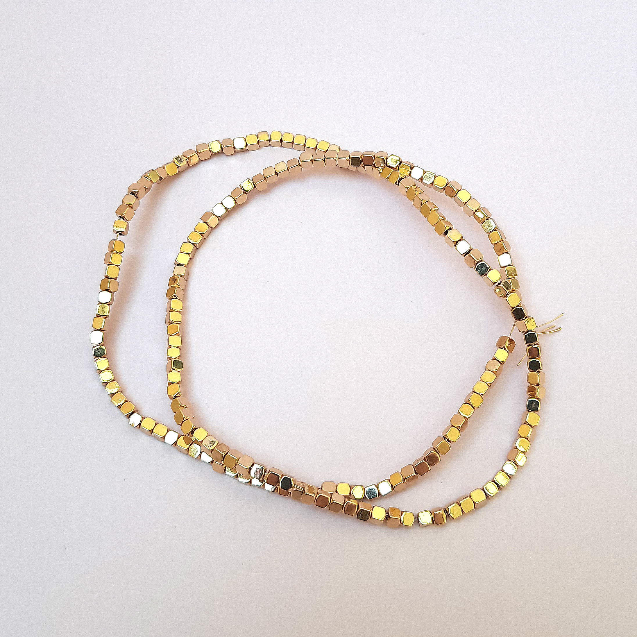 Намистини з гематиту 2х2 мм, квадратні з огранюванням, золотий, нитка 40 см.