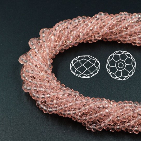 Гранені намистини у формі ронделі з кришталевого скла з гальванічним покриттям. Використовуються в прикрасах та на одязі. Відмінно переливаються та виблискують.