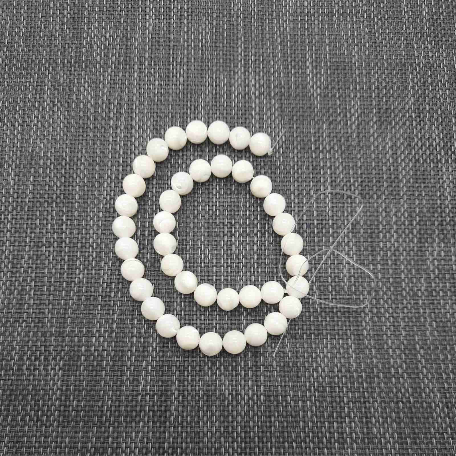 Намистини з перламутру натурального, круглі, 10 мм, білі, нитка 35 см.