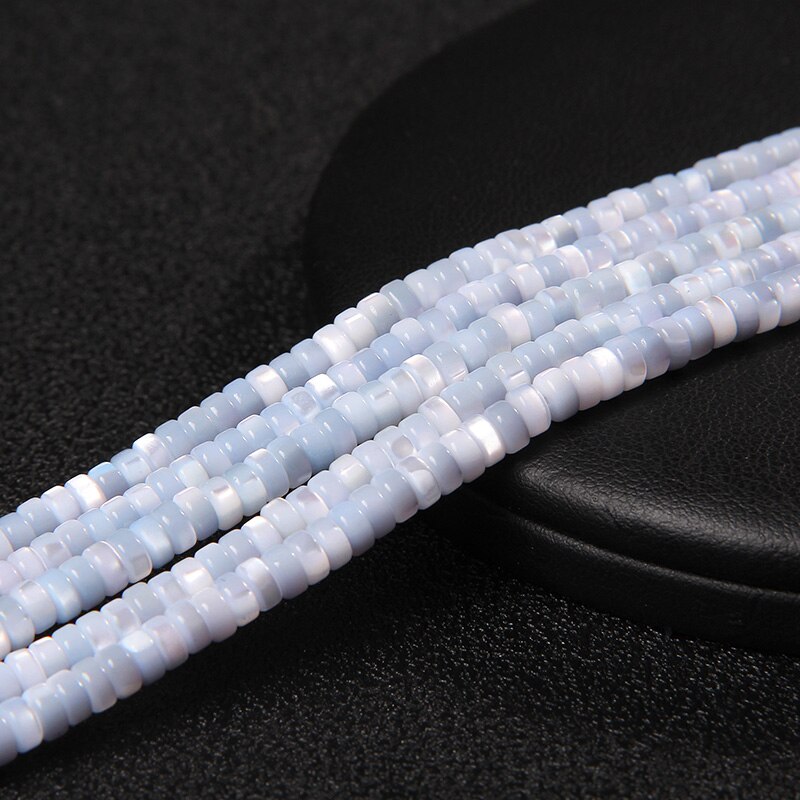 Намистини з перламутру натурального 2х4 мм., шайби, сіро-блакитний, нитка 38 см.