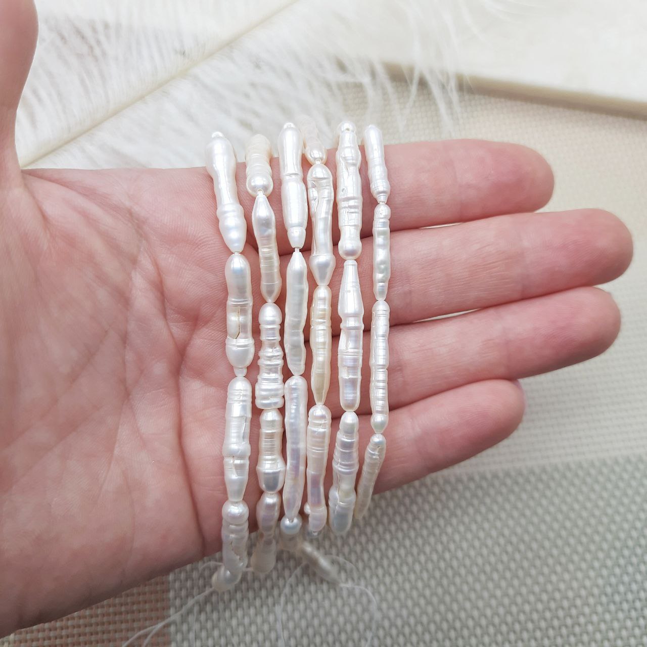 Натуральні барокові перли біва вирізняються унікальною формою і живою текстурою, що надає прикрасам органічного, художнього характеру. Білий колір перлин підкреслює їхнє природне сяйво й універсальність у поєднанні з будь-якою фурнітурою. Діаметр 4-6 мм робить нитку ідеальною для створення браслетів, кольє або сережок з характером. Чудовий вибір для тих, хто цінує натуральність і витончену асиметрію.