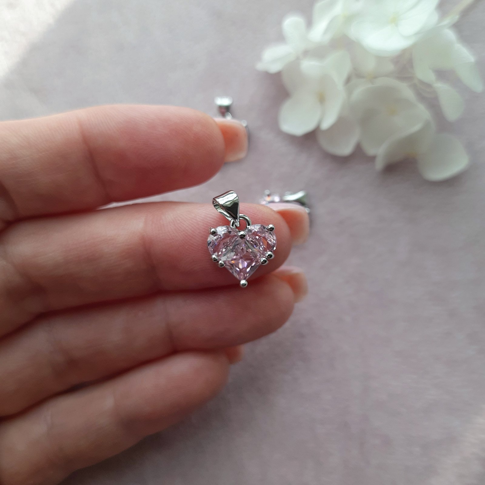 Розкішна підвіска у вигляді серця з рожевим кристалом. Покриття родієм. Бейл в комплекті. Підходить для комбінування з чокерами, ланцюжками, кольє.