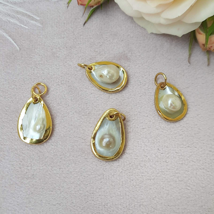 Кожен кулон вирізаний із натуральної мушлі, в центрі якої зберігся зародок перлини. Ніжне мерехтіння перламутру та витончене сяйво перлини й мушлі роблять його по-справжньому особливим.