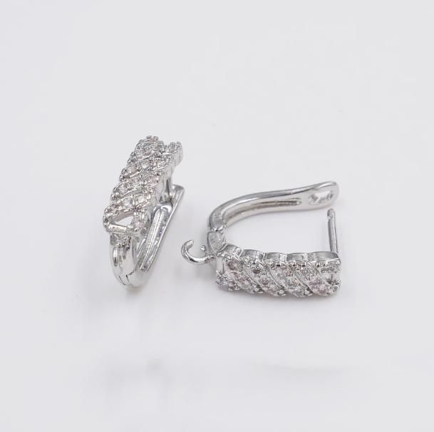 Ці швензи зачаровують своїм дизайном. Мають геометричну форму та роз'ємну петельку для підвісу. Матеріал - латунь з родієм.Вставки – фіаніти (циркони).Ціна вказана за пару!... Читати далі...