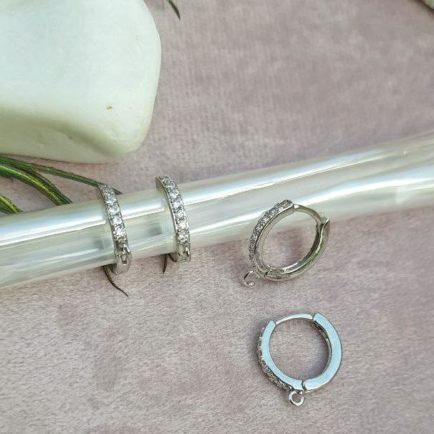 Маленькі швензи - основа для виготовлення сережок у вигляді обручки з мікроінкрустацією фіанітами (кубічний цирконій). Мають кільце для підвіски. Замок конго.