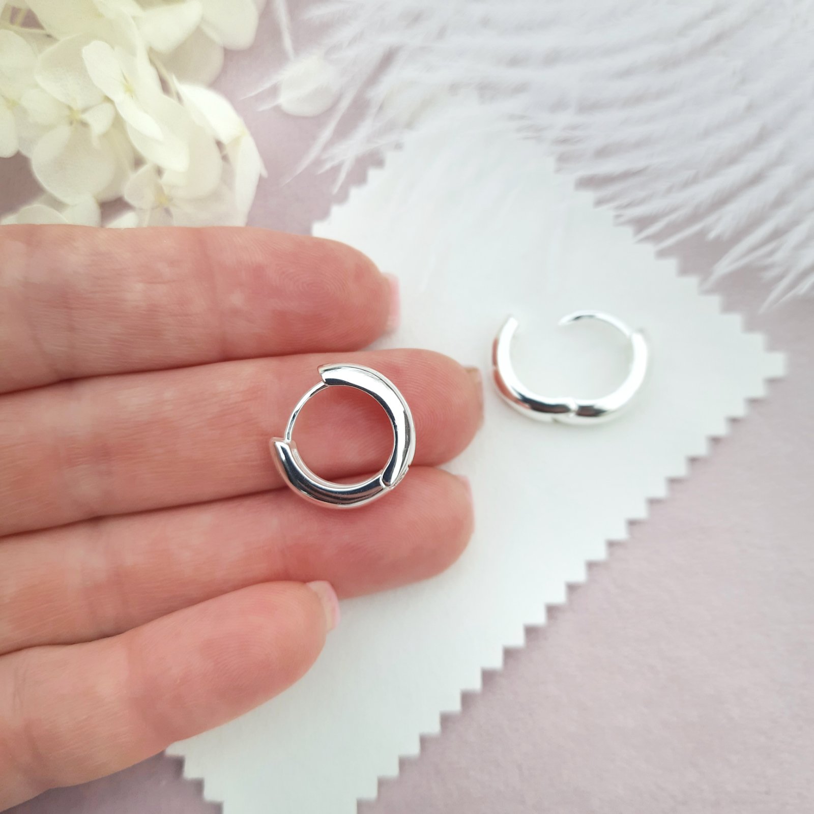 Класичні сережки-кільця на кожен день. Вони компактні й акуратні. Виготовлені з латуні, оснащені надійним і зручним у використанні замком-конго. Лаконічний дизайн робить сережки універсальними, їх можна носити з діловим, повсякденним і святковим одягом.