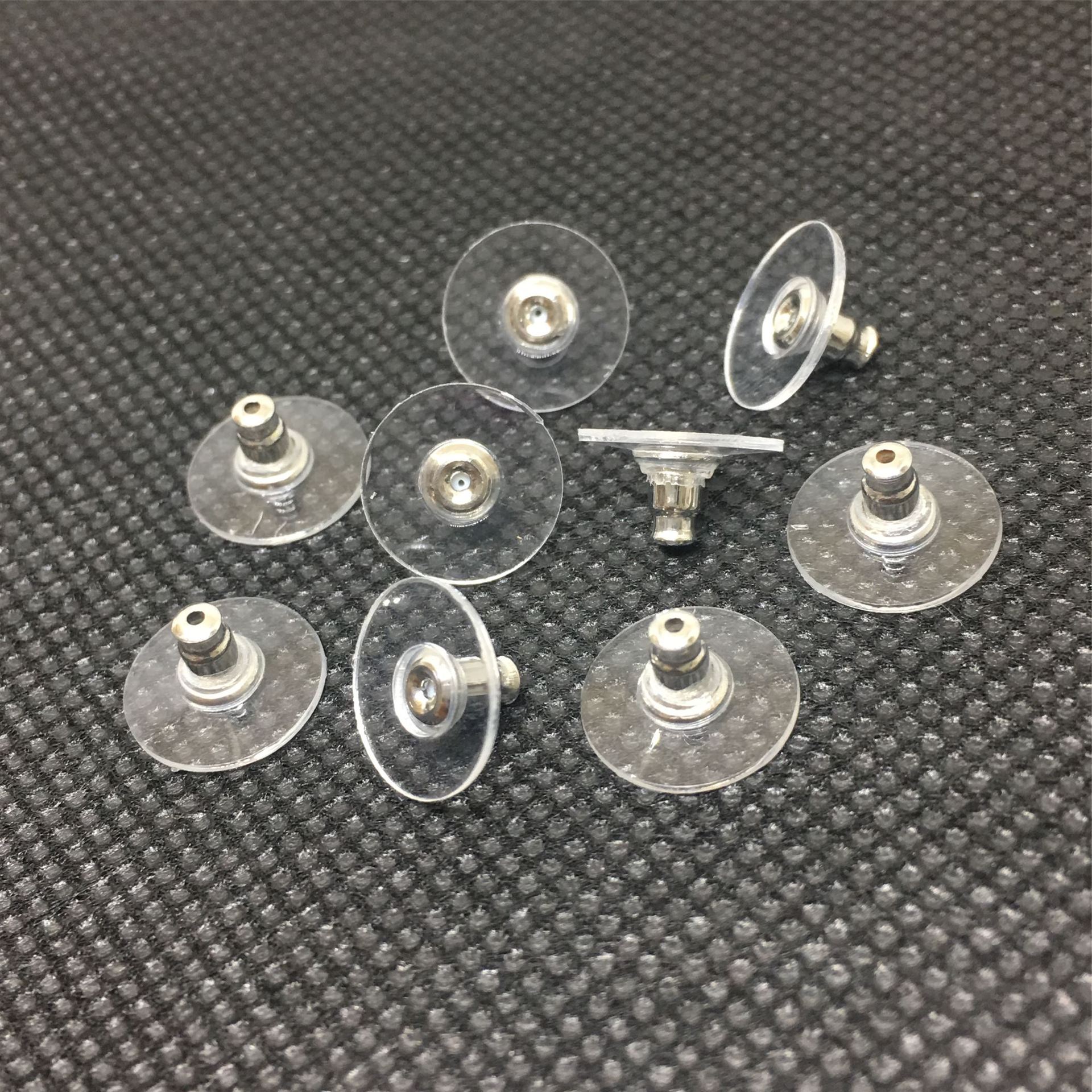 Комбіновані заглушки-фіксатори для сережок складаються з силікону та пластику. Силікон забезпечує гнучкість і комфорт, а пластик забезпечує довговічність і стабільність. Вони фіксують сережки на вусі та забезпечують додаткову підтримку, створюючи універсальний і надійний аксесуар для сережок.