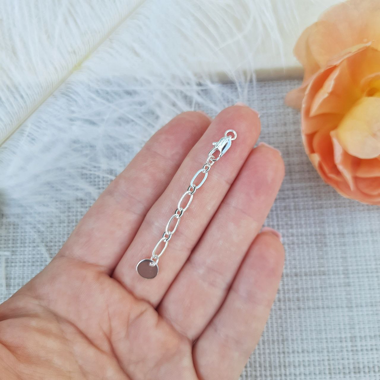 Універсальний карабін з подовжувальним ланцюжком і декоративним круглим жетоном — практичне рішення для завершення прикрас. Сріблясте покриття надає аксесуару сучасний і нейтральний вигляд. Довжина карабіна 10 мм забезпечує зручність і надійність у застібанні. Ідеально підійде для браслетів, кольє та інших регульованих виробів.