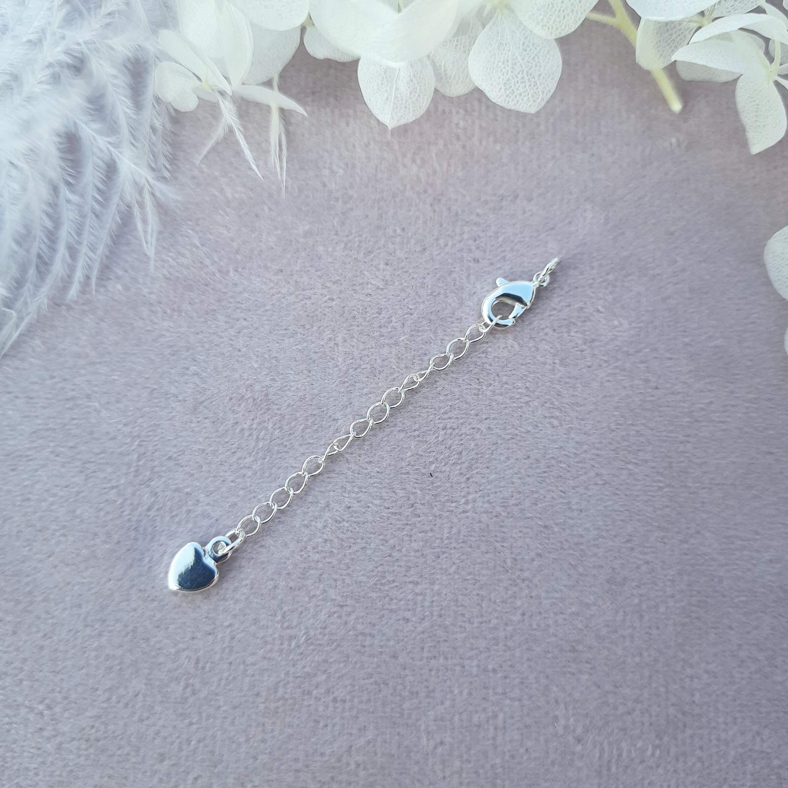 Карабін 10 мм. з ланцюжком продовжувачем, родій, 70 мм., серце, колір - світле срібло, 1 шт.