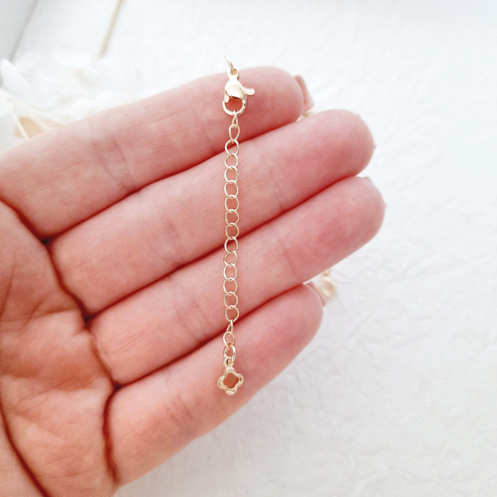 Карабін має розмір 10 мм та забезпечує надійне застібування. Ланцюжок, що подовжує, довжиною 65 мм дозволяє комфортно підігнати прикрасу під потрібний розмір. Підвіска «конюшина» робить виріб особливо привабливим, додає у виріб символ благополуччя.