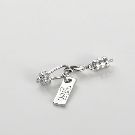 Елегантний комплект із замком-карабіном "Сабріна" – ідеальне рішення для створення розкішних прикрас. Має витончену інкрустацію фіанітами, що додає виробу вишуканого блиску. Надійне гальванічне покриття родієм забезпечує довговічність і стійкість до потемніння.