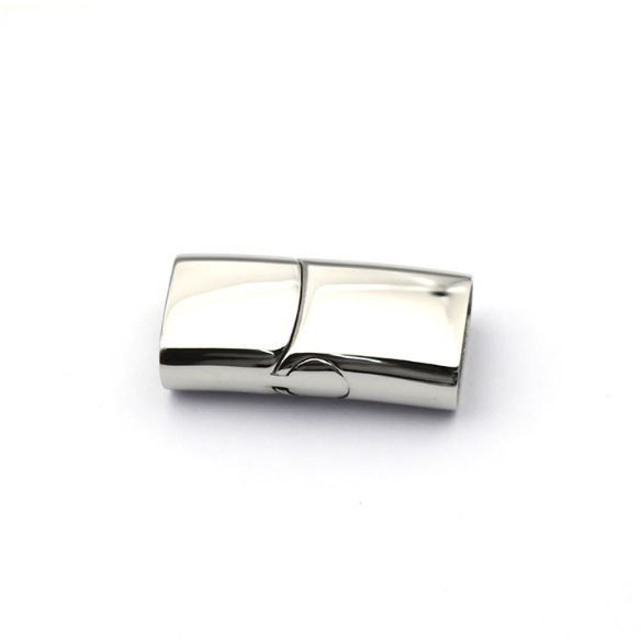 Компактний та міцний аксесуар призначений для надійного кріплення шнурів розмірами до 12х6 мм. Виготовлений з нержавіючої сталі, має гальванічне родиєве покриття, забезпечує надійне з'єднання та надає елегантного вигляду вашим прикрасам або модним аксесуарам. Його магнітний механізм забезпечує зручне та просте кріплення. Призначений для вклеювання шнурів, ланцюжків або інших прикрас.
