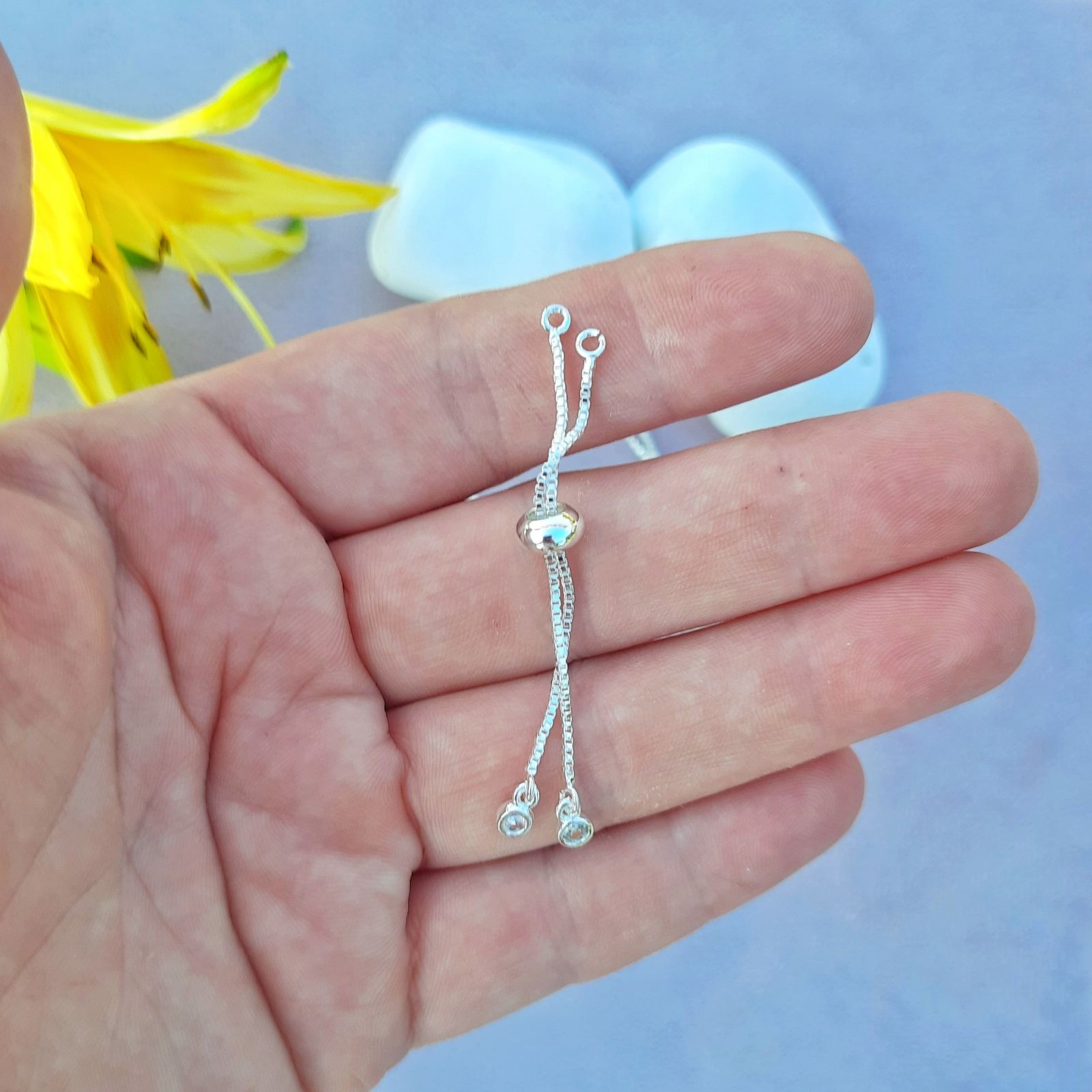 Регульована застібка для браслета чи анклета. У максимальному розтягуванні – 9 см. Довжина у зібраному вигляді – 6 см. Діаметр цепочки 1,2 мм. Діаметр бусини із силіконовою вставкою - 8 мм.