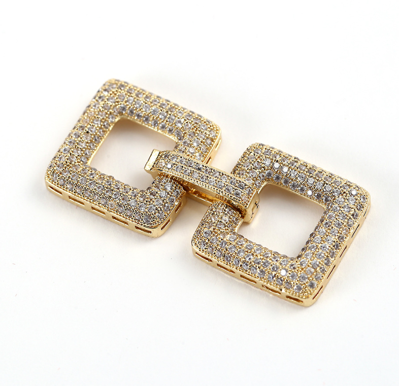 Це першокласний аксесуар, створений з метою додати елегантності та вишуканості вашому образу. Розміри замка – 49х24 мм, виготовлений з латуні з гальванічним стійким покриттям. Та прикрашений фіанітами.