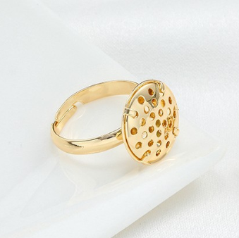 Елегантне кільце-основа "Медові стільники" - стильний та універсальний елемент для створення прикрас. Виготовлено з покриттям 18К, яке надає виробу благородного блиску і захищає від потемніння. Майданчик діаметром 12 мм із перфорацією дозволяє легко закріпити різні декоративні елементи.