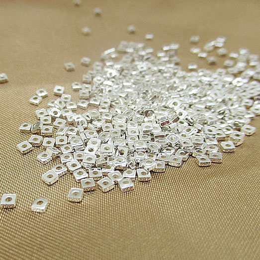 Бусины квадратные 2х2х1 мм., родий, цвет - светлое серебро, 100 шт.