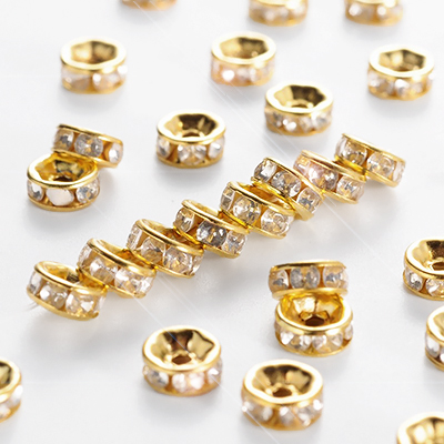 Бусины разделители со стразами, 4 мм., 14К, 4 шт.