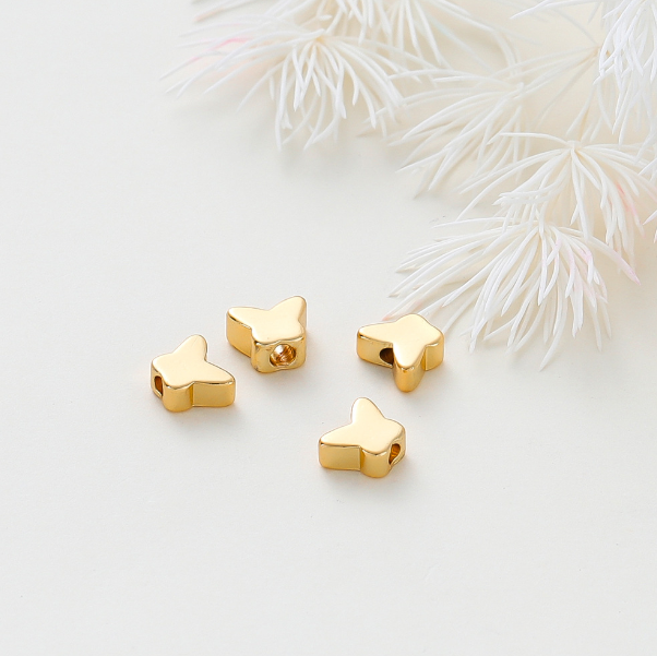 Разделительные бусины Бабочки плоские, 6х5х2,5 мм., 14K, цвет - золото G01, 5 шт.