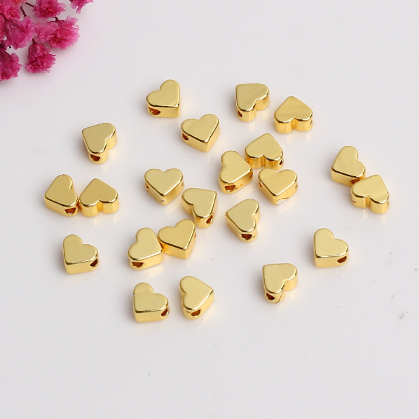 Разделительные бусины Сердце плоское, 7х6х2,5 мм., 14K, цвет - золото G01, 5 шт.