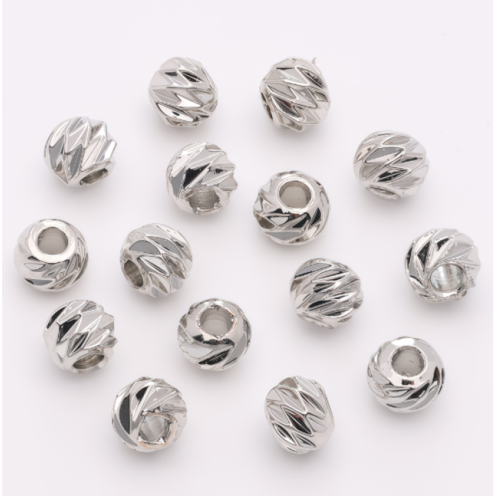 Раздельные бусины с огранкой и родиевым покрытием в платиновом оттенке придают украшениям сияние и элегантность. Диаметр 4 мм делает их удобными для акцентирования и разделения элементов в браслетах, колье и сережках. Платиновый цвет гармонично сочетается с камнями, стеклом и металлом, подчеркивая общую стилистику изделия. Отличный выбор для утонченных и продуманных композиций.