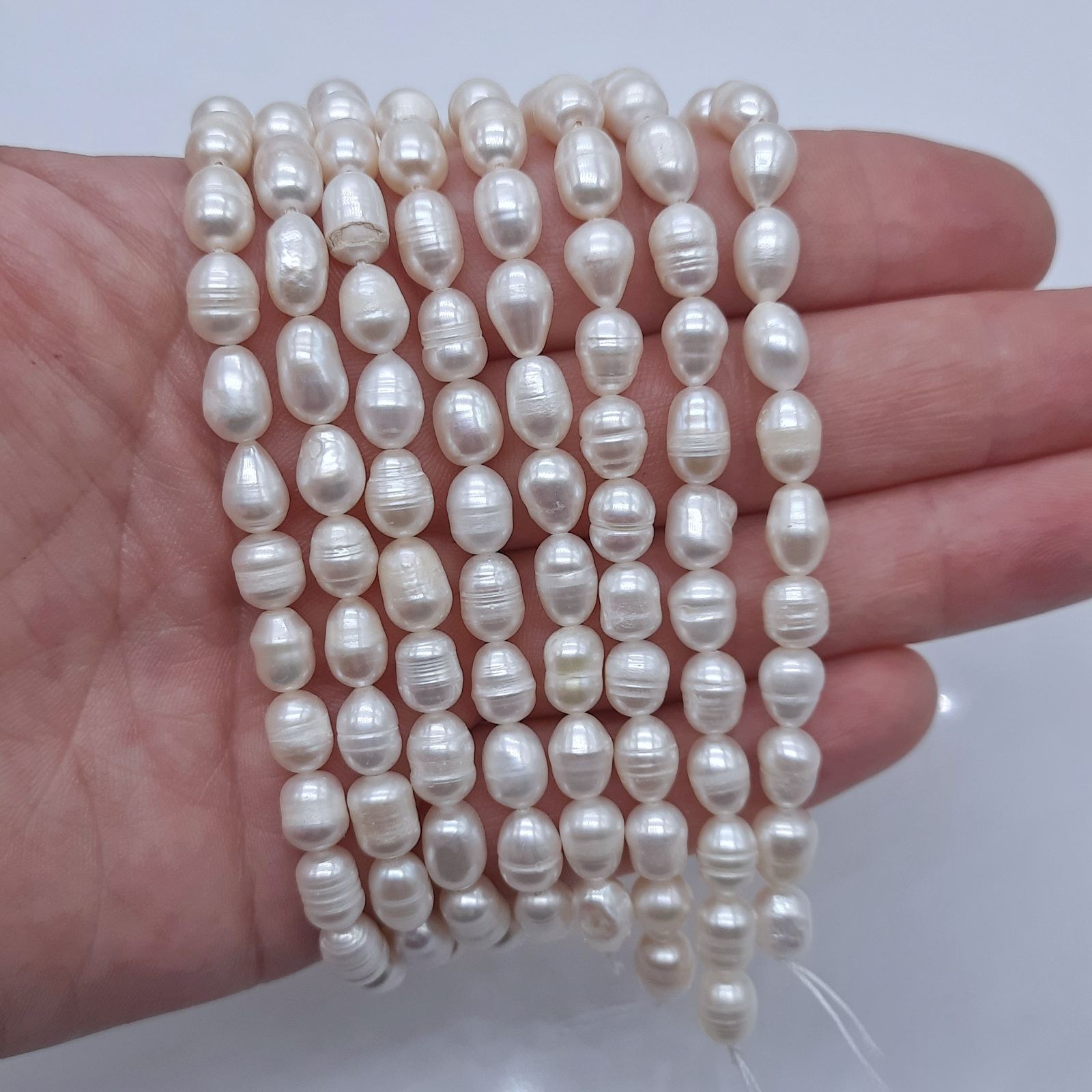 Нить жемчуга для рукоделия, браслетов, ожерелий, ювелирных изделий. Натуральный речной овальной формы (рис). Цвет - белый. Класс жемчуга А+. Натуральный жемчуг неизбежно имеет изъяны на бусинах. Просим учитывать перед размещением заказа. Длина нити - 33 см.