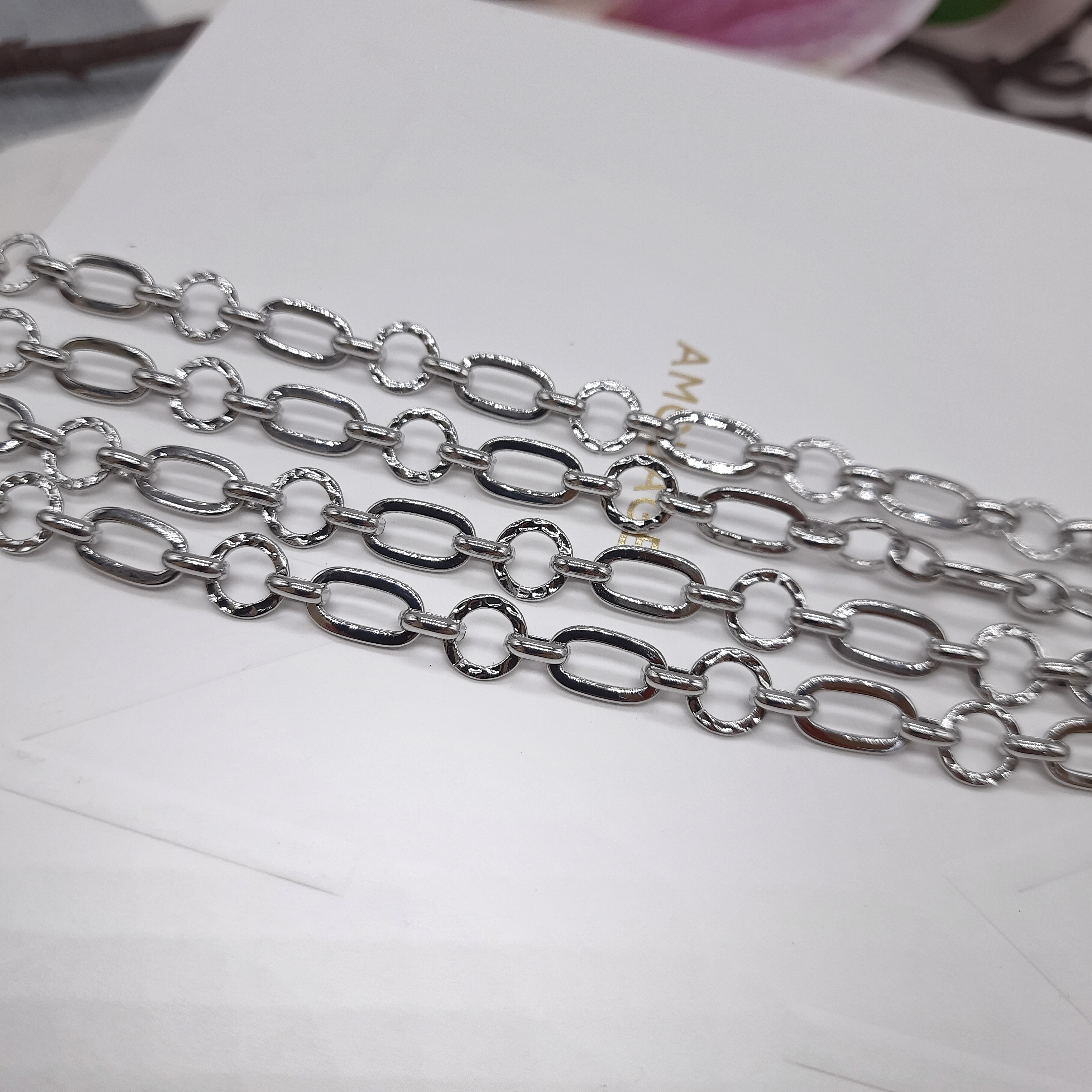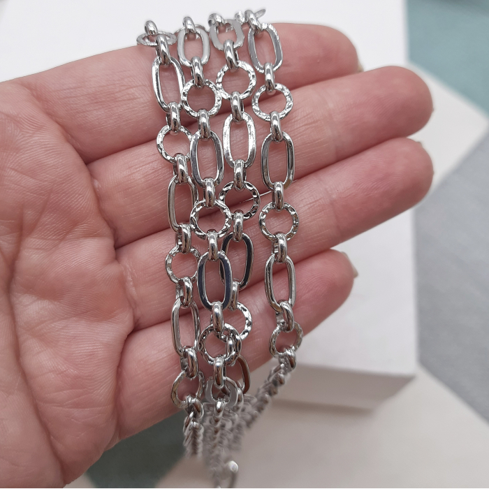 Цепочка для изготовления украшений премиум качества. Оригинальный дизайн позволит создать украшения как из одной цепи, так и в комбинации с бусинами, кулонами, вставками. Все звенья данной цепи разъемные. Толщина 4,6 мм у соединительного звена.