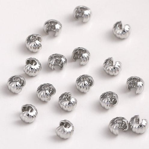 Обжимные (укрывные) бусины Тыковки, 4 мм, родий, цвет - платина, 10 шт.