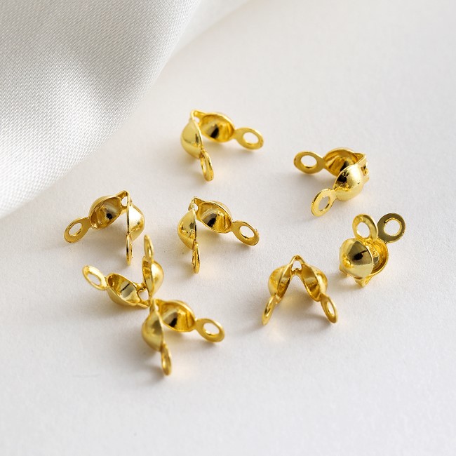 Калоты используют для аккуратного крепления изделия к замочку, как завершающий элемент, который скрывает сам узел крепления. Данный вид калот имеет 2 ушка, которые соединяют после того как будет установлен кримп.
