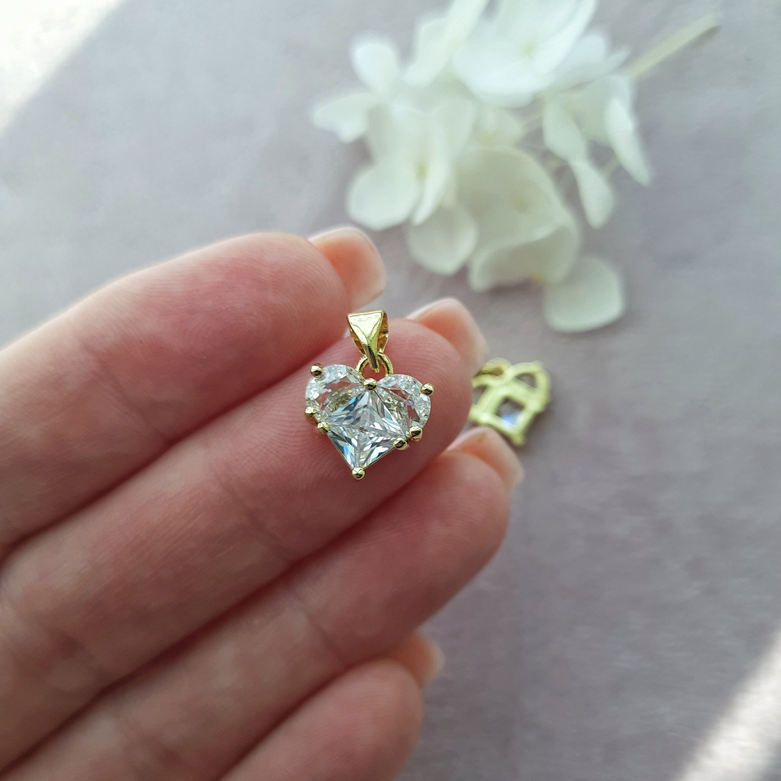 Роскошная подвеска в виде сердца с прозрачным кристаллом. Покрытие 18К. Бейл в комплекте. Подходит для комбинирования с чокерами, цепочками, колье. Можно снять бейл и использовать со швензами. Кристаллы играют и переливаются.