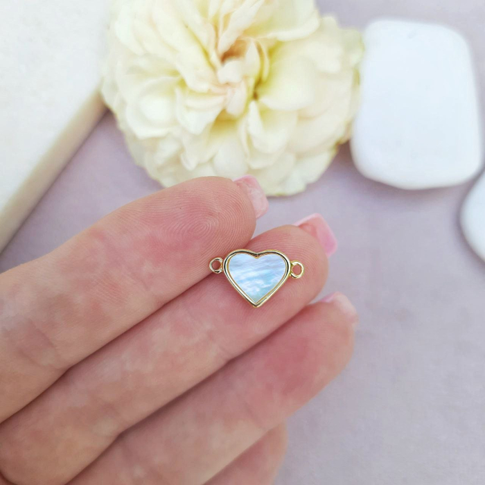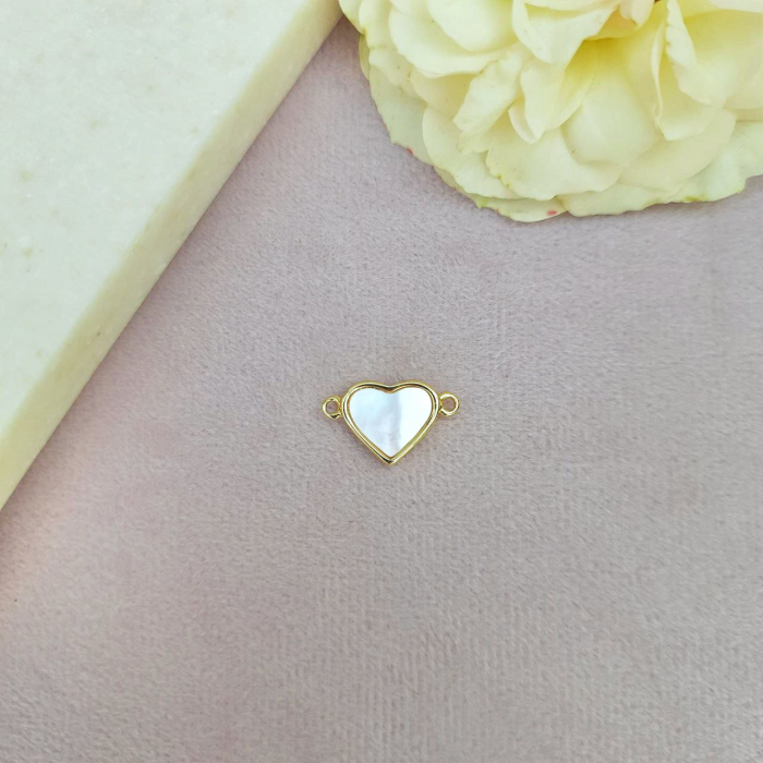 Элегантный коннектор в форме сердца с перламутром и покрытием 14К золота придаёт украшениям мягкость и утончённость. Размер 11×17 мм делает его акцентным, но не перегружает композицию. Идеален для браслетов, колье или серег в романтичном стиле. Перламутровая вставка добавляет естественного сияния, а золотой обод подчёркивает тепло и изысканность изделия.