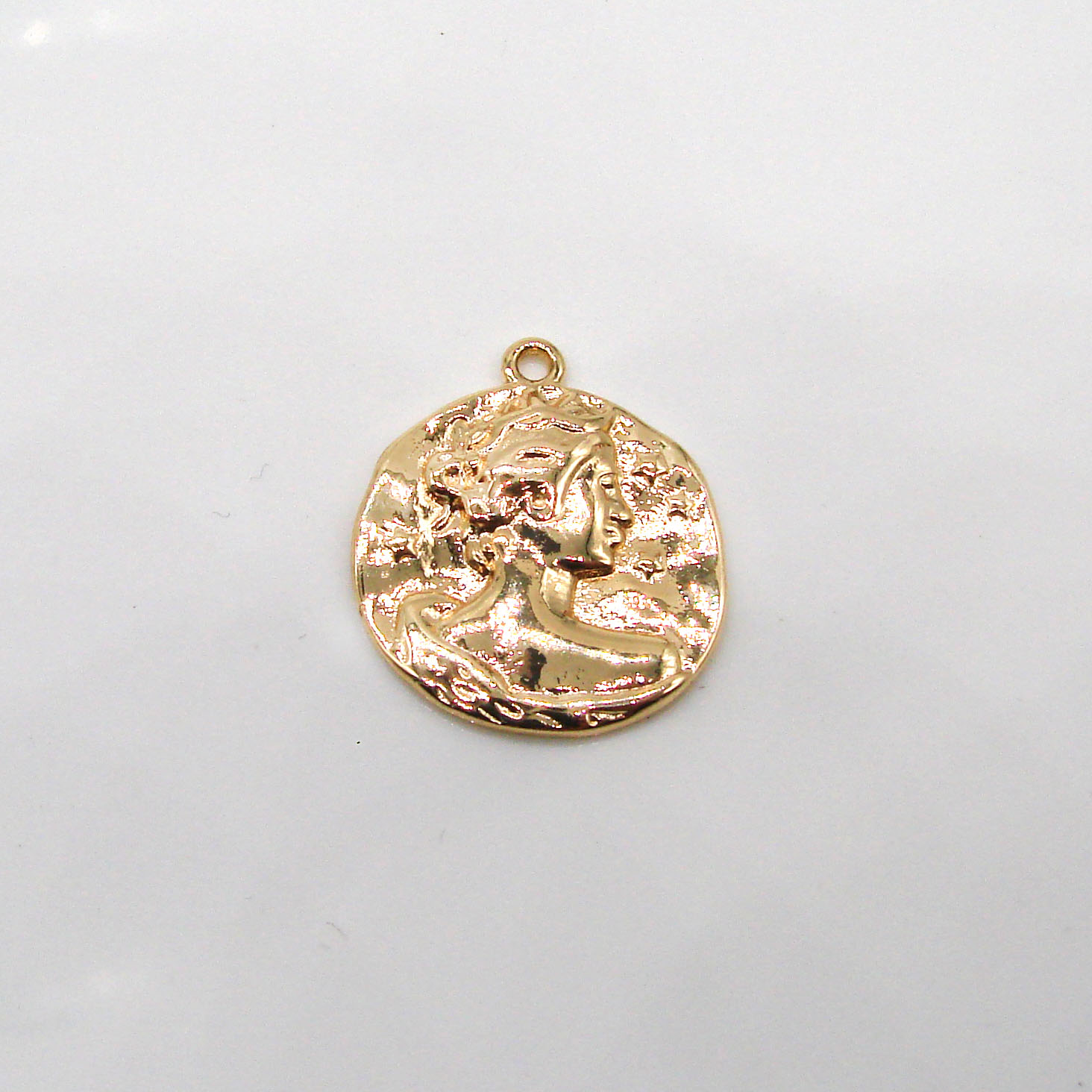 Кулон выполнен в виде древней монеты с женским силуэтом. Предназначен для использования при изготовлении украшений. Подходит для комбинирования с чокерами, цепочками, колье.