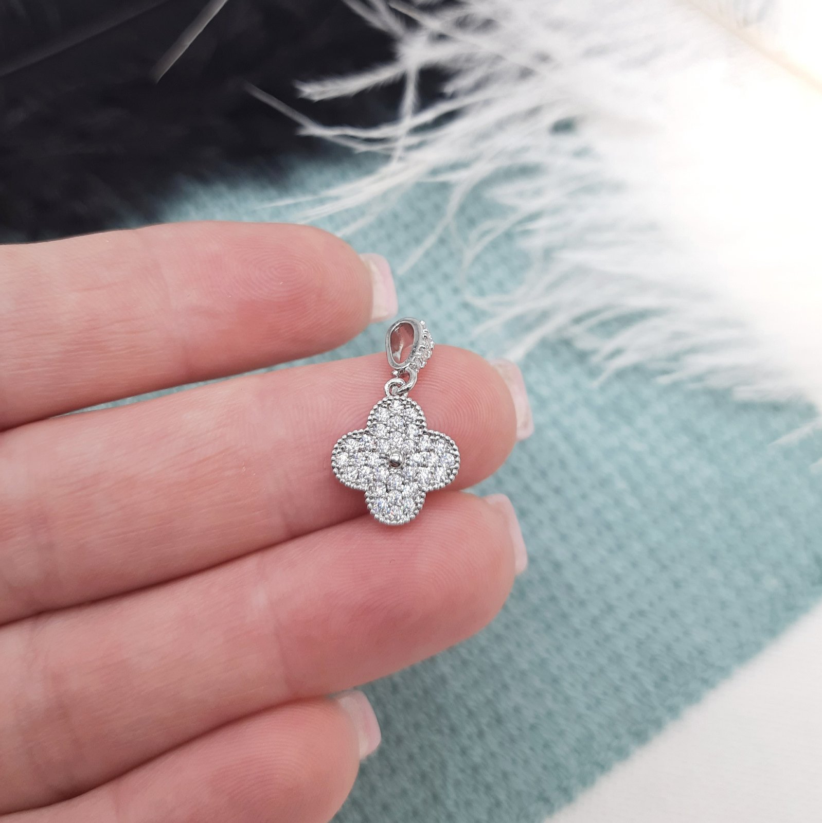 Подвеска Клевер Фужинэ, с бейлом, родий, 13х14 мм, цвет - платина