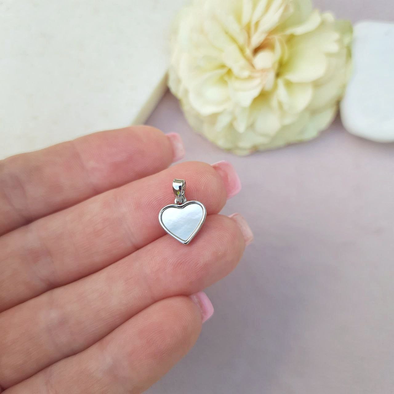 Подвеска Нежное сердце (перламутр) с бейлом, родий, 11х16 мм., цвет - платина