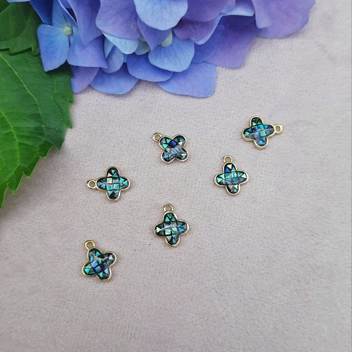 Маленькая, изящная подвеска в форме клевера с зеленым перламутром. Подвеска хорошо будет смотреться на браслете, колье, чокере, серьгах.