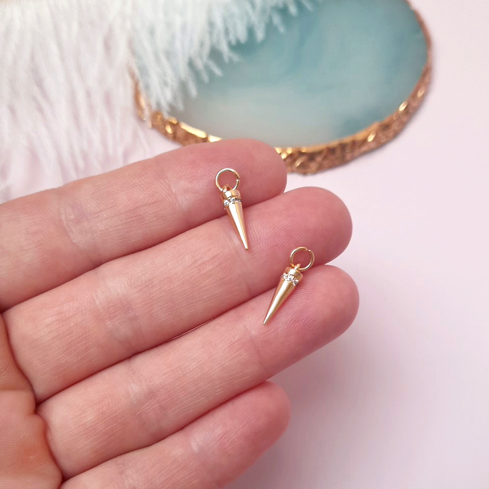 Подвеска заостренная с фианитами, известными своим блеском и сходством с бриллиантами. Подходит для комбинирования с чокерами, цепочками, колье.Материал: латунь с покрытием позолотой 14K.Высота: 15 мм.Ширина: 4 мм.Цена з... Читать далее...