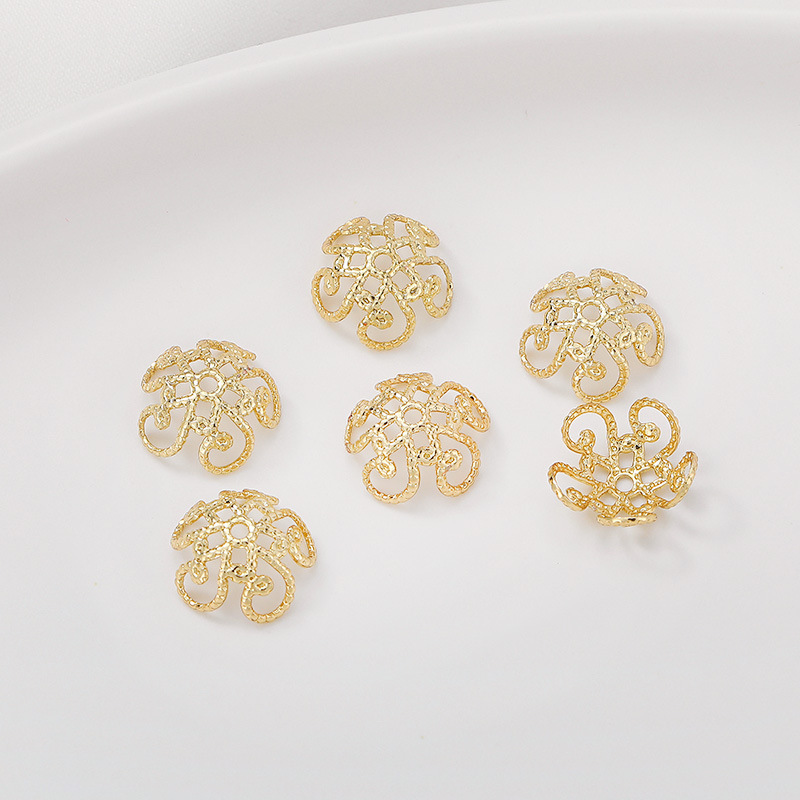 Шапочки для бусин Шабо, 14К, диаметр 10 мм., цвет - золото, 10 шт.