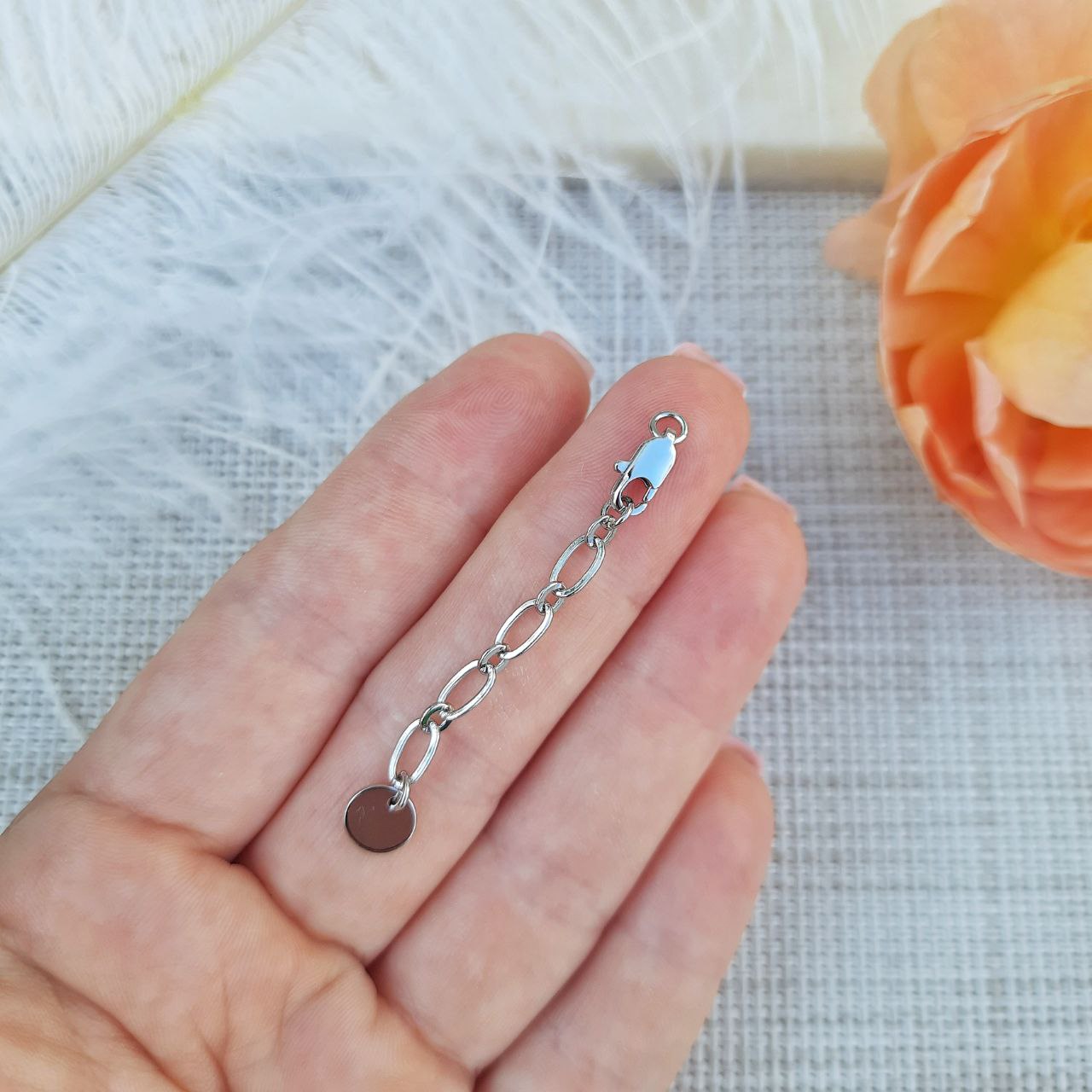 Элегантный карабин с удлинительной цепочкой и круглым жетоном — надёжный и стильный элемент фурнитуры для завершения украшений. Платиновый оттенок придаёт изделию современный и универсальный вид, хорошо сочетается с разл... Читать далее...