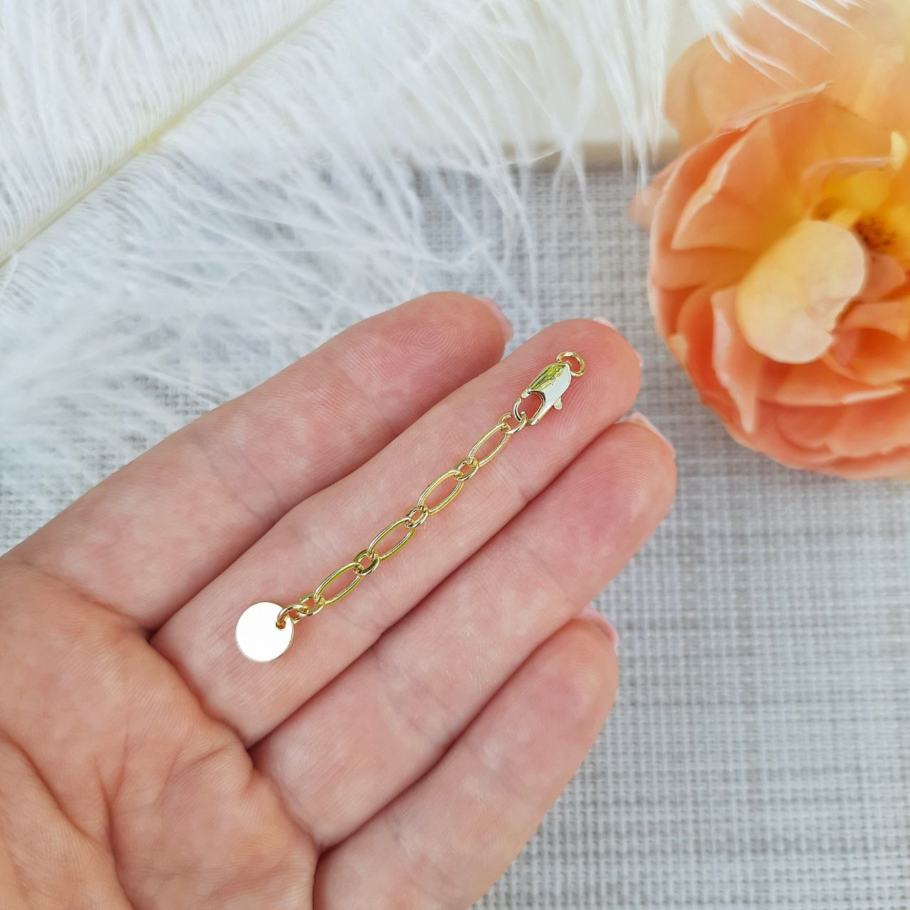 Фурнитура «два в одном» — надёжный карабин 10 мм с удлинительной цепочкой и круглым жетоном для декоративного акцента. Покрытие 18К придаёт изделию элегантный блеск золота. Идеально подходит для создания регулируемых бра... Читать далее...
