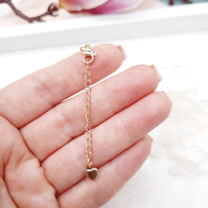 Декоративный карабин с удлиняющей цепочкой и подвеской в форме сердца — стильный и функциональный элемент для создания украшений. Идеально подходит для браслетов, ожерелий, чокеров и цепочек, позволяя легко регулировать длину изделия и добавлять акцентный декоративный штрих.