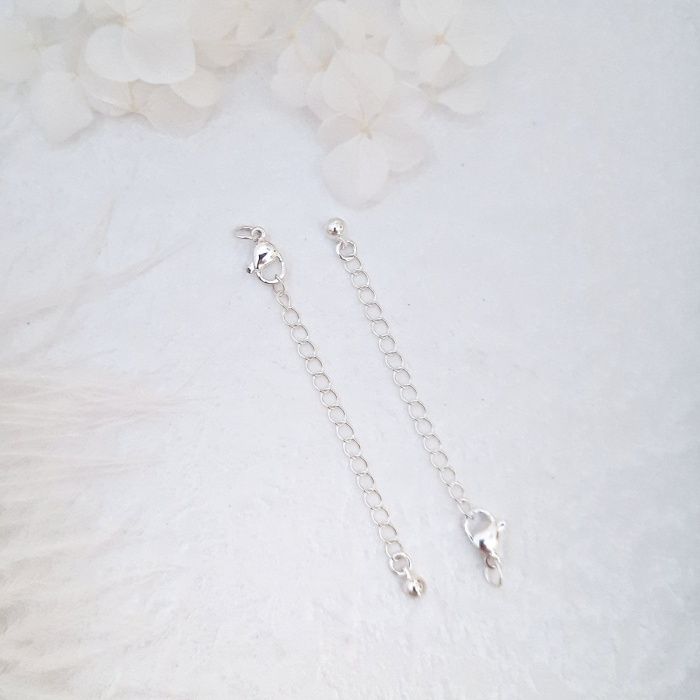 Карабин 10 мм с удлиняющей цепочкой, 65 мм, шарик, родий, цвет - светлое серебро
