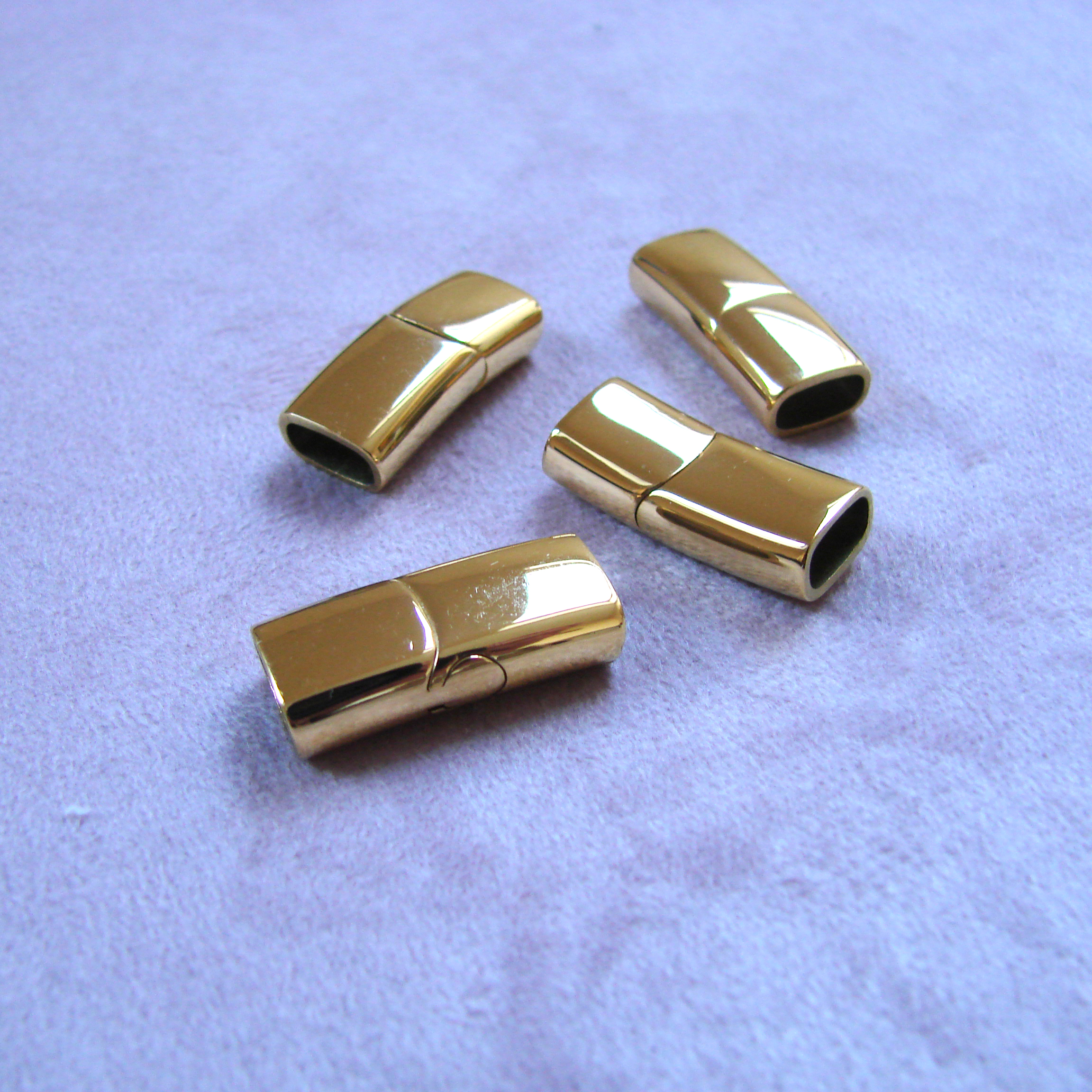 Компактный и прочный аксессуар, предназначенный для надежного крепления шнуров размерами до 8х4 мм. Изготовлен из нержавеющей стали, имеет гальваническое покрытие 18К, обеспечивает надежное соединение и придает элегантный вид вашим украшениям или модным аксессуарам. Его магнитный механизм обеспечивает удобное и простое крепление. Предназначен для вклеивания шнуров, цепочек или других элементов украшений.