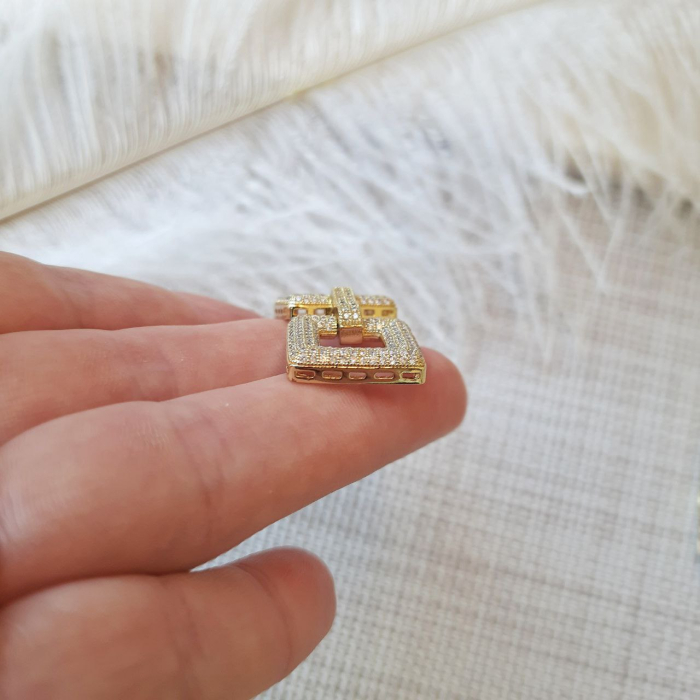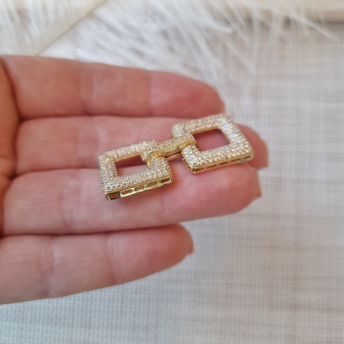 Элегантный замок для браслетов. Изготовлен из латуни с покрытием 18К, инкрустирован множеством фианитов (цирконов), которые красиво переливаются на свету. Такой замок станет не только функциональной частью украшения, но ... Читать далее...