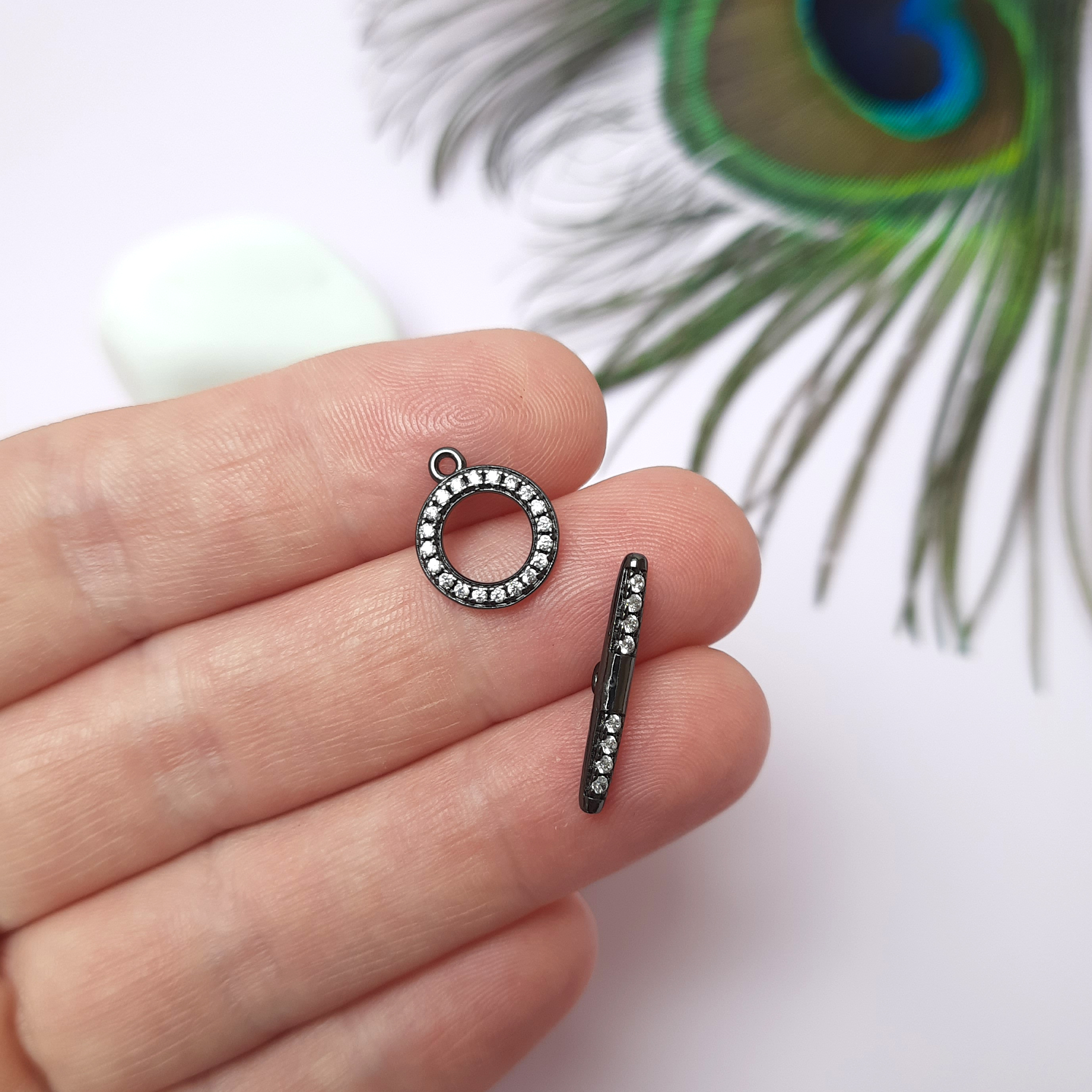 Застежка для крепления ювелирных изделий, которая состоит из планки и кольца. Планка вставляется в кольцо для фиксации украшения. Данный тогл выполнен в технике MilanoLux. Это микроинкрустация фианитами, что добавляет изделию особый шарм и дороговизну.