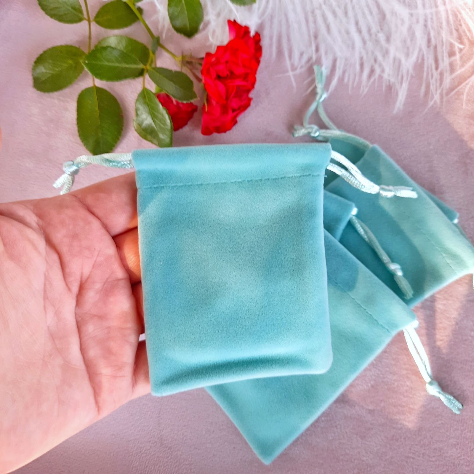 Мешочки 7х9 см., lux-бархат, цвет - тифани, 5 шт.